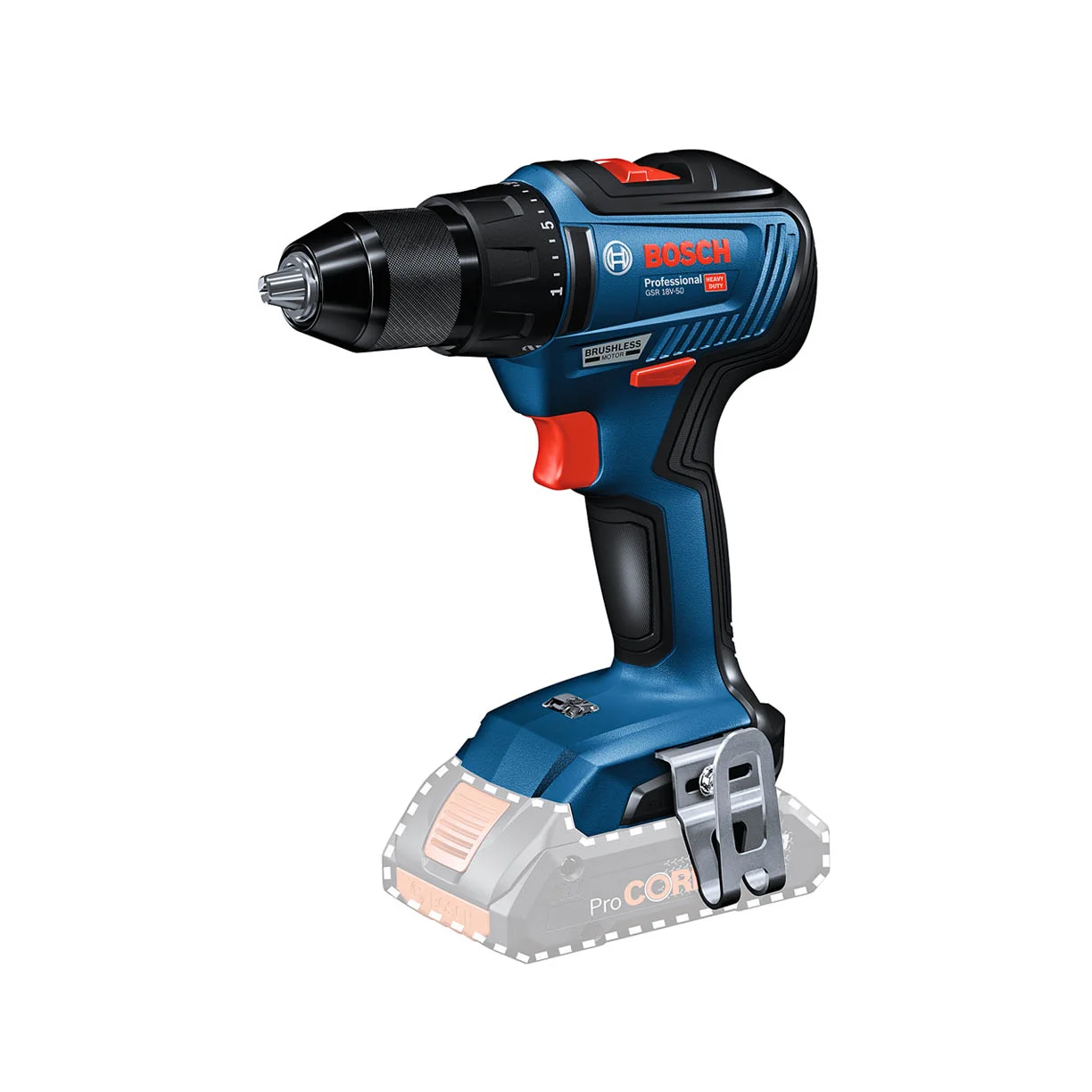 Bosch GSR 18V-50 zahvaljujući snažnom i ekonomičnom motoru bez četkica omogućava postizanje 30% veće efikasnosti od prethodnih modela. Čvrsta metalna ručka i kompaktan, ergonomski dizajn čine ovu akumulatorsku bušilicu/odvijač idealnom za teške poslove. Akumulatorska bušilica opremljena EC-motorom bez četkica, održava punu efikasnost i funkcionalnost nakon pada sa 2 metra na beton, kućište je potpuno odvojeno od pogonskog dijela i u kombinaciji sa fleksibilnim Dura Shield materijalom pruža savršenu zaštitu od bilo kakvih vibracija, udaraca i oštećenja, dizajniran za teške zadatke i rad pod vrlo velikim opterećenjima, opremljen ECP elektronskim zaštitnim sistemom koji štiti akumulator i motor od preopterećenja i pregrijavanja, sprječava duboko pražnjenje akumulatora i produžava vijek trajanja akumulatora i motora nekoliko puta, opremljen sistemom upravljanja toplotnom energijom koji osigurava optimalno odvođenje topline, snižava temperaturu baterije i štiti ćelije od prekomjernog zagrijavanja, Visokokvalitetni 2-brzinski mehanički mjenjač sa brzim mjenjačem otpornim na prašinu i potpuno metalnim planetarnim zupčanicima za vrlo dug vijek trajanja i savršen prenos pogona: 1. brzina – dizajnirana za bušenje rupa velikog promjera i za zavrtnje vijaka i šrafova, 2. brzina – dizajniran za bušenje burgijama malog prečnika, vitka i ergonomska ručka prekrivena neklizajućim, mekim materijalom za držanje sa osjetljivim elektronskim prekidačem, osiguravajući visoku sigurnost u radu i visoku udobnost rada, istovremeno osiguravajući preciznost pri bušenju i zavrtanju.