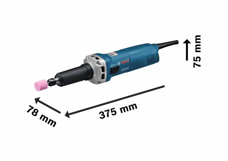 Nominalna ulazna snaga* 650 W Broj obrtaja u praznom hodu* 10.000 – 30.000 min-1 Napon, električni 230 V Ø vrata vretena 43 mm Težina* 1,6 kg maks. prečnik brusnog tela 50 mm Predana snaga* 380 W maks. prečnik steznih čeljusti 8 mm Površina ključa stezne navrtke 19 mm Površina ključa brusnog vretena 13 mm Prekidač Prekidač koji se može blokirati Ukupne vrednosti vibracije (Brušenje površina do Ø25)
